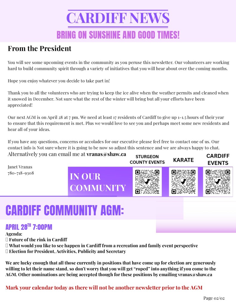 Cardiff Community Association; Enhancing the quality of life for family and residents of Cardiff, Alberta.